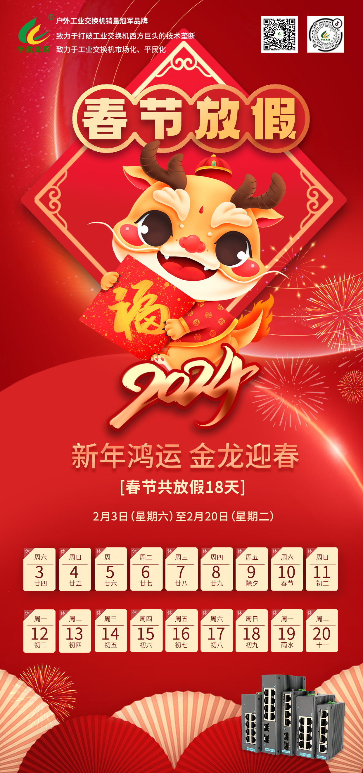 宇航工業(yè)交換機(jī)2024年春節(jié)放假通知!