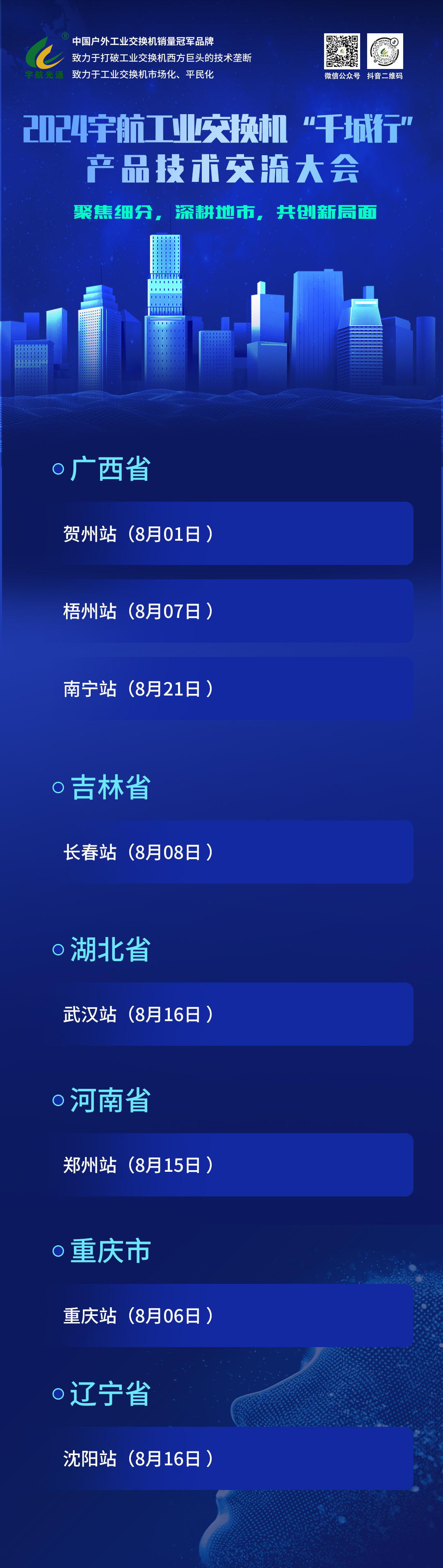 八月,宇航工業(yè)交換機(jī)將亮相國(guó)內(nèi)外多場(chǎng)展會(huì)(山東泰安、新疆及越南),并在廣西賀州、梧州、南寧,吉林長(zhǎng)春,遼寧沈陽(yáng),湖北武漢,河南鄭州,重慶等城市舉辦“2024宇航工業(yè)交換機(jī)千城行產(chǎn)品技術(shù)交流大會(huì)”,深度探討行業(yè)解決方案。此外,還特別受邀參與河南鄭州、陜西西安等地的“百城會(huì)-智慧安防技術(shù)交流會(huì)”,共謀安防新未來(lái)。宇航工業(yè)交換機(jī)誠(chéng)摯邀請(qǐng)各界精英蒞臨現(xiàn)場(chǎng),參觀指導(dǎo),攜手共創(chuàng)新篇章!