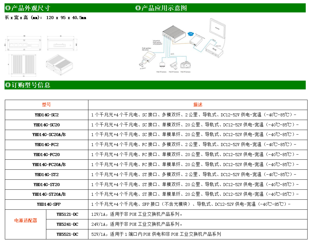 4路千兆電口+1路千兆FX光口工業(yè)級(jí)以太網(wǎng)交換機(jī),支持4個(gè)100Base-T/1000Base-TX電口和1個(gè)1000Base-X光口。產(chǎn)品符合FCC、CE、ROHS標(biāo)準(zhǔn)。YH300-14G系列交換機(jī)具有-40℃~85℃的工作溫度,具有超強(qiáng)的堅(jiān)固度能適應(yīng)各種嚴(yán)苛環(huán)境,也可以非常方便的安置在空間緊湊的控制箱中。導(dǎo)軌的安裝特性、寬溫操作及擁有IP40防護(hù)等級(jí)的外殼及LED指示燈,使YH300-14G系列成為一個(gè)即插即用的工業(yè)級(jí)設(shè)備,為用戶的以太網(wǎng)設(shè)備聯(lián)網(wǎng)提供可靠、便捷的解決方案。
