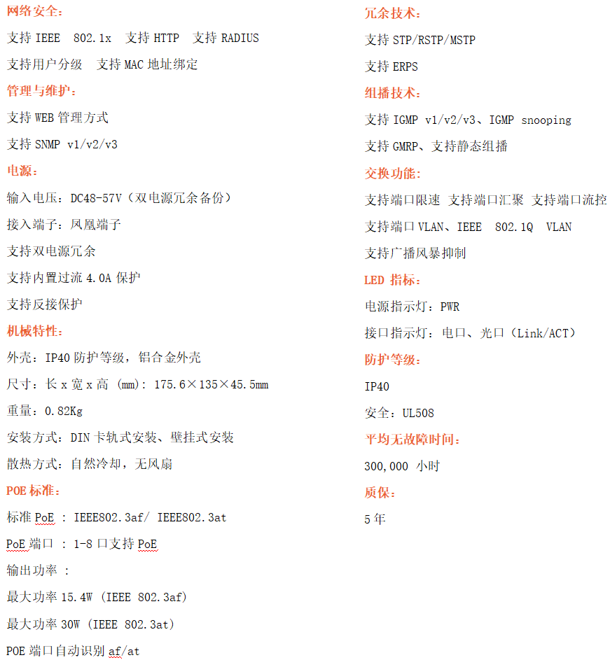 ●告警功能:支持電源,端口,異常狀態繼電器輸出IP40防護等級