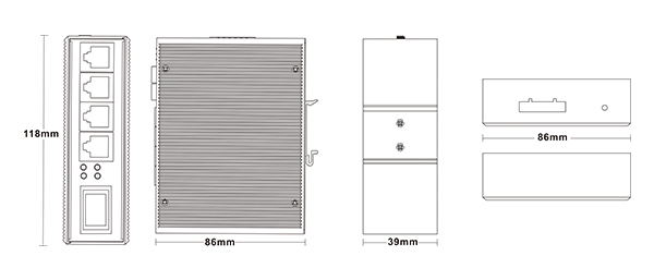 外殼:金屬材質 安裝:DIN 卡軌式,壁掛式安裝 重量:0.36Kg 尺寸 :118 x 86 x 39mm (長 x 寬 x 高) |