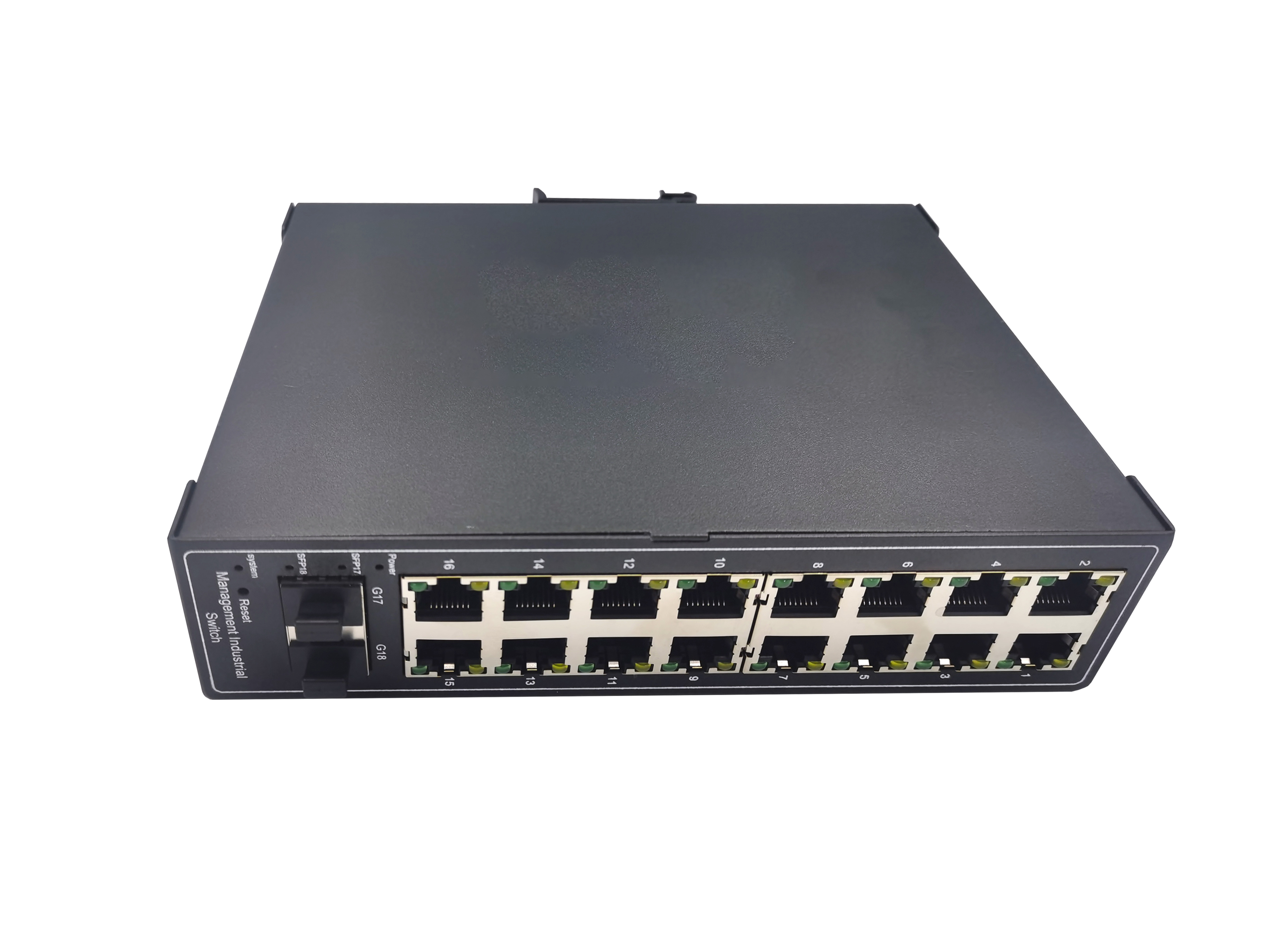 YH600L-216GFS-SFP系列網管型工業以太網交換機,產品符合FCC、CE、ROHS標準。支持2個千兆光口和16個百兆電口,支持工業現場所需的以太網二層協議,保證通信網絡的穩定性;該系列交換機采用低功耗、無風扇設計,確保無噪聲干擾,同時支持-40~75℃工作溫度和良好的EMC電磁兼容性能,保證在惡劣的工業環境中保持穩定的工作,為工廠自動化,智能交通,視頻監控等工業應用領域組建快速穩定的網絡終端接入網絡提供安全可靠的解決方案。