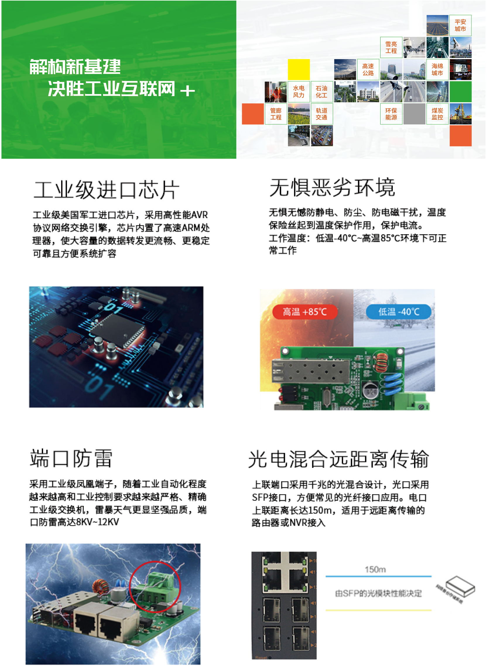 | 采用工業(yè)級(jí)元器件,具有防雷、防過(guò)壓、防浪涌設(shè)計(jì),雙電源輸入,保證在不良自然天氣及電壓不穩(wěn)環(huán)境下網(wǎng)絡(luò)的正常運(yùn)行。 | |