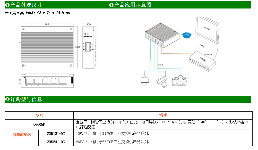 5路千兆電口工業級以太網交換機,支持5個10Base-T/100Base-TX/1000Base-TX電口。產品符合FCC、CE、ROHS標準。AF05G交換機具有-30℃~75℃的工作溫度,具有超強的堅固度能適應各種嚴苛環境,也可以非常方便的安置在空間緊湊的控制箱中。導軌的安裝特性、寬溫操作及擁有IP40防護等級的外殼及LED指示燈,使AF05G成為一個即插即用的工業級設備,為用戶的以太網設備聯網提供可靠、便捷的解決方案。