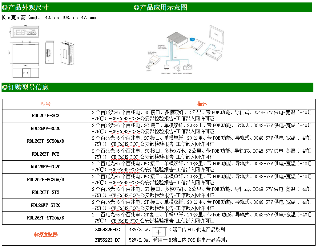 6路百兆POE電口+2路百兆FX光口工業(yè)級以太網(wǎng)交換機,支持6個10Base-T/100Base-TX電口和2個100Base-X光口。產(chǎn)品符合FCC、CE、ROHS標準。RDL26FP系列交換機具有-40℃~75℃的工作溫度,具有超強的堅固度能適應(yīng)各種嚴苛環(huán)境,也可以非常方便的安置在空間緊湊的控制箱中。導(dǎo)軌的安裝特性、寬溫操作及擁有IP40防護等級的外殼及LED指示燈,使RDL26FP成為一個即插即用的工業(yè)級設(shè)備,為用戶的以太網(wǎng)設(shè)備聯(lián)網(wǎng)提供可靠、便捷的解決方案。