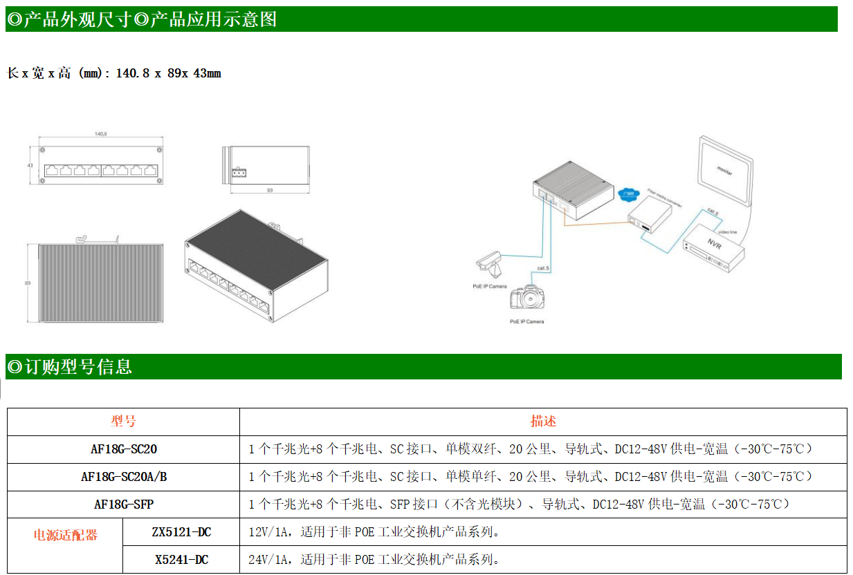8路千兆電口+1路千兆FX光口工業(yè)級(jí)以太網(wǎng)交換機(jī),支持8個(gè)100Base-T/1000Base-TX電口和1個(gè)1000Base-X光口。產(chǎn)品符合FCC、CE、ROHS標(biāo)準(zhǔn)。AF18G系列交換機(jī)具有-30℃~75℃的工作溫度,具有超強(qiáng)的堅(jiān)固度能適應(yīng)各種嚴(yán)苛環(huán)境,也可以非常方便的安置在空間緊湊的控制箱中。導(dǎo)軌的安裝特性、寬溫操作及擁有IP40防護(hù)等級(jí)的外殼及LED指示燈,使AF18G成為一個(gè)即插即用的工業(yè)級(jí)設(shè)備,為用戶的以太網(wǎng)設(shè)備聯(lián)網(wǎng)提供可靠、便捷的解決方案。
