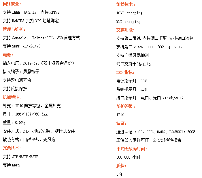 ●支持STP/RSTP/ERPS,SNMPv1/v2/v3,確保網(wǎng)絡(luò)安全