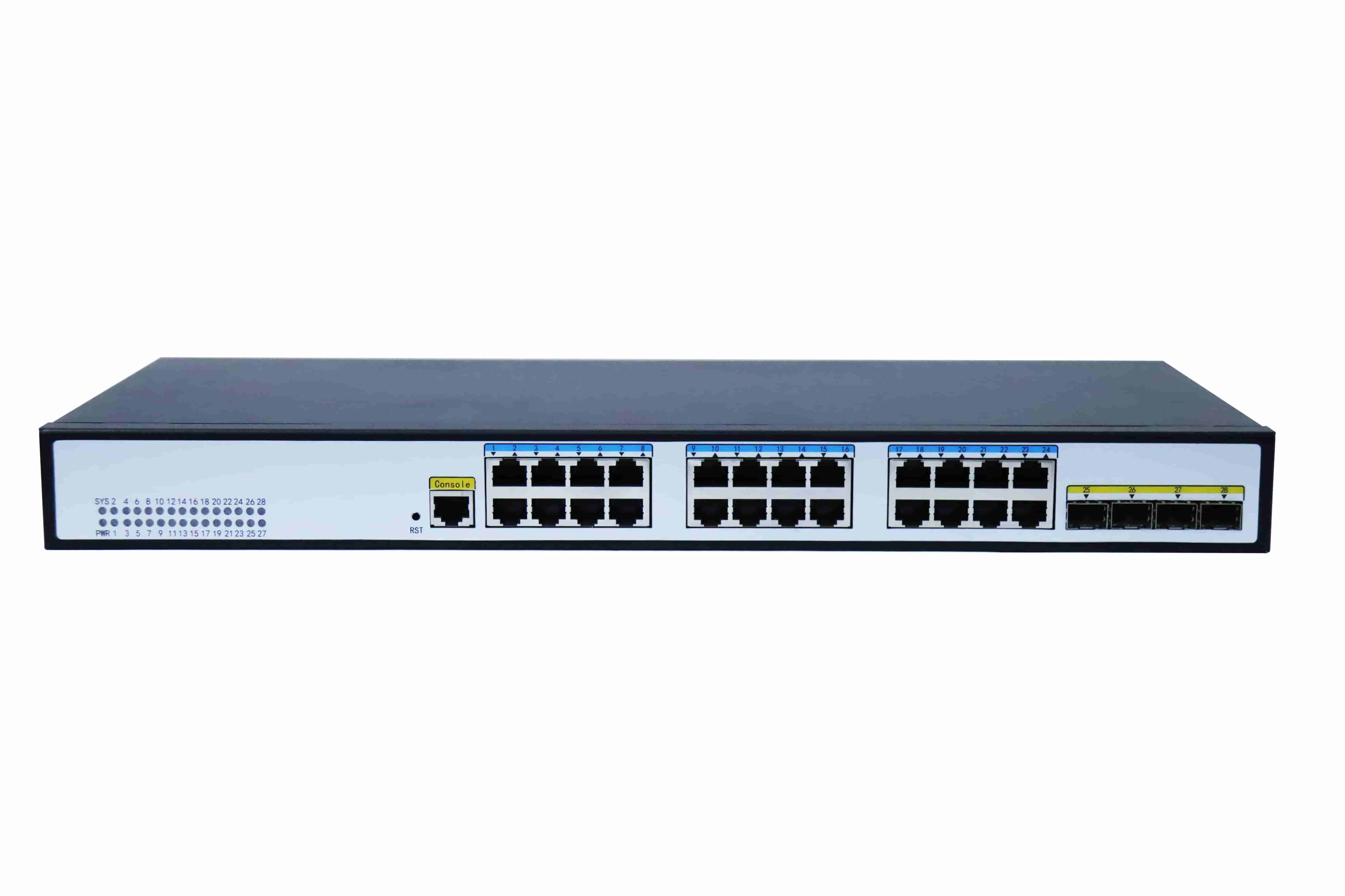 - 提供10/12/26/28多規格端口產品,所有端口均具備千兆線速轉發能力,滿足不同用戶需求。