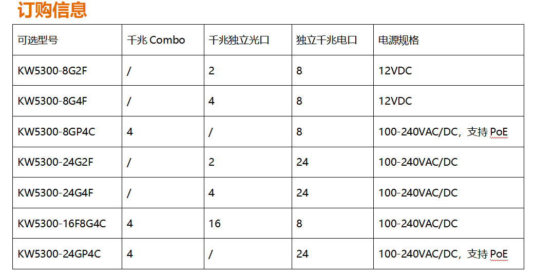 ?全新開發推出的KW5300系列全千兆網管寬溫交換機,采用新一代高性能硬件和軟件平臺,提供靈活、高性價比的全千兆接入和上行端口,支持完備的安全防護機制、完善的ACL/QoS策略和靈活的VLAN功能,易于管理維護,滿足用戶對于網絡設備易管理、高安全、高性能、低成本的組網需求,專為市政、銀行、教育、醫院、酒店、網吧、數據中心等室內項目以及戶外新基建項目定制系列,能滿足大規模的市場需求。