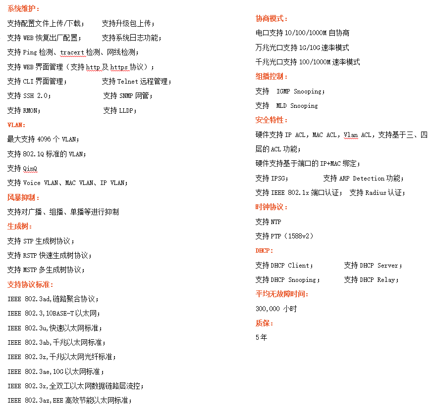 ●監(jiān)控維護(hù):支持端口鏡像,接口狀態(tài)監(jiān)控,日志管理