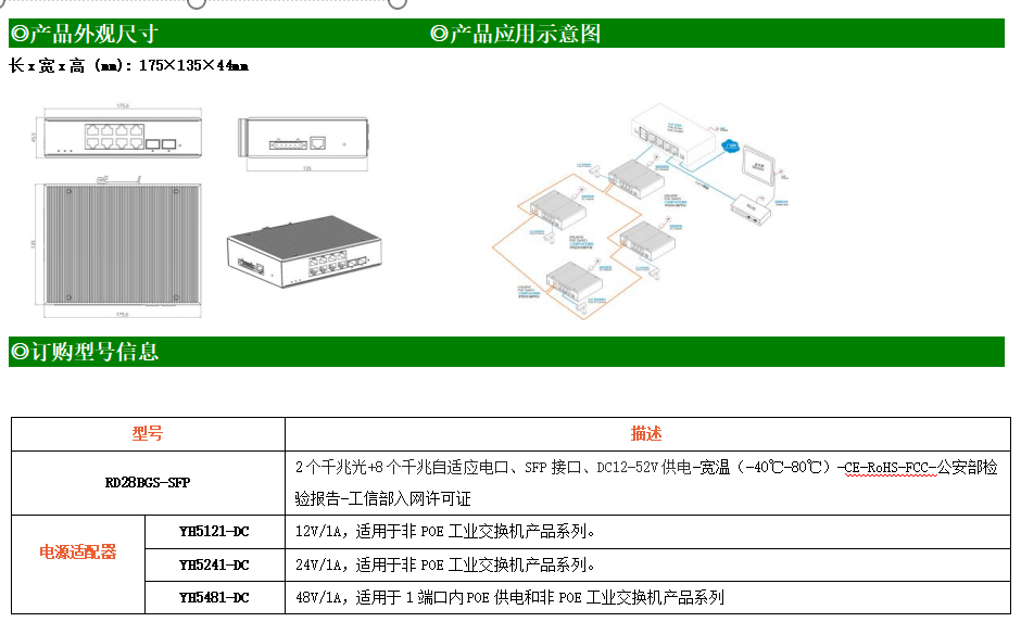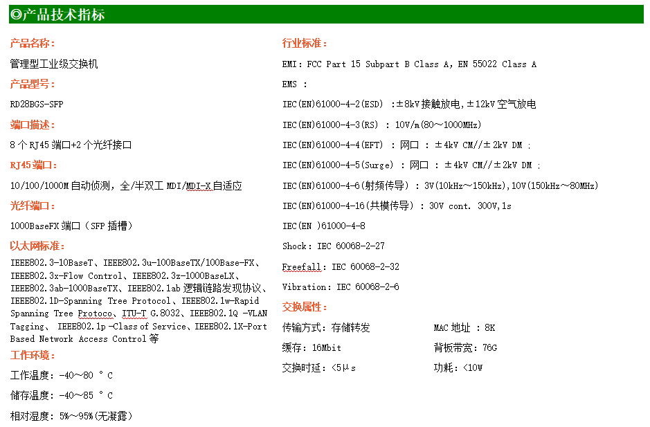 RD28BGS-SFP是網管型工業以太網交換機,產品符合FCC、CE、ROHS標準。支持2個千兆光口和8個千兆電口,支持一路console口;支持工業現場所需的以太網二層協議,保證通信網絡的穩定性;該系列交換機采用低功耗、無風扇設計,確保無噪聲干擾,同時支持-40~85℃工作溫度和良好的EMC電磁兼容性能,保證在惡劣的工業環境中保持穩定的工作,為工廠自動化,智能交通,視頻監控等工業應用領域組建快速穩定的網絡終端接入網絡提供安全可靠的解決方案。