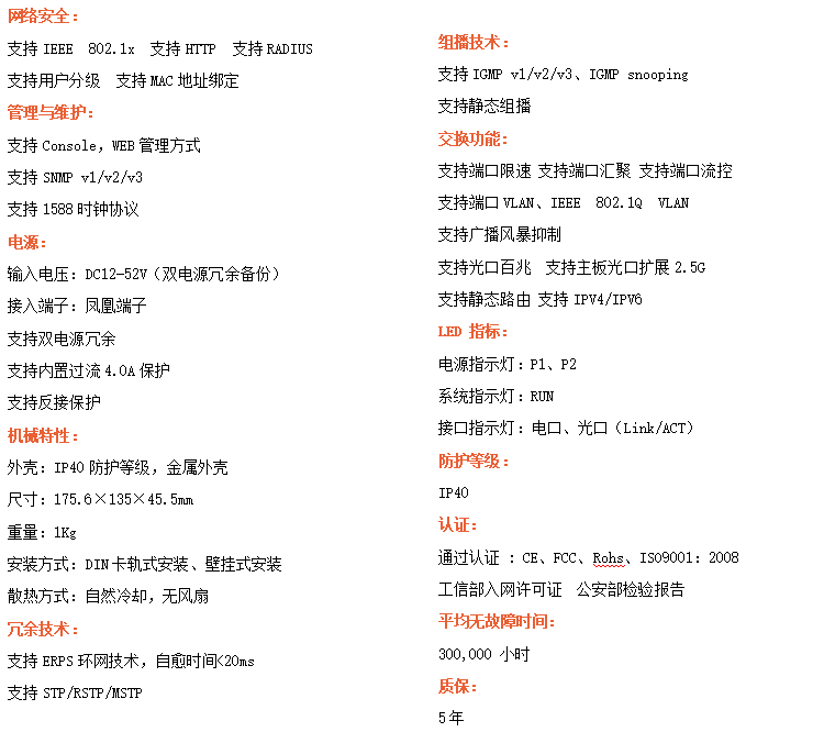 ●支持STP/RSTP/MSTP/ERPS,SNMPv1/v2/v3,確保網絡安全