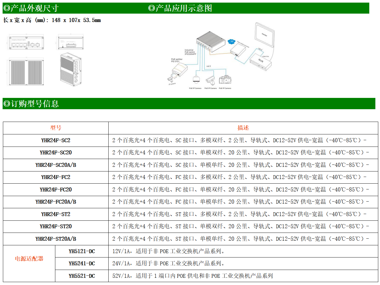 4路百兆電口+2路百兆FX光口工業(yè)級以太網(wǎng)交換機,支持4個10Base-T/100Base-TX電口和2個100Base-X光口。產(chǎn)品符合FCC、CE、ROHS標準。YH200-24F系列交換機具有-40℃~85℃的工作溫度,具有超強的堅固度能適應(yīng)各種嚴苛環(huán)境,也可以非常方便的安置在空間緊湊的控制箱中。導(dǎo)軌的安裝特性、寬溫操作及擁有IP40防護等級的外殼及LED指示燈,使YH200-24F成為一個即插即用的工業(yè)級設(shè)備,為用戶的以太網(wǎng)設(shè)備聯(lián)網(wǎng)提供可靠、便捷的解決方案。
